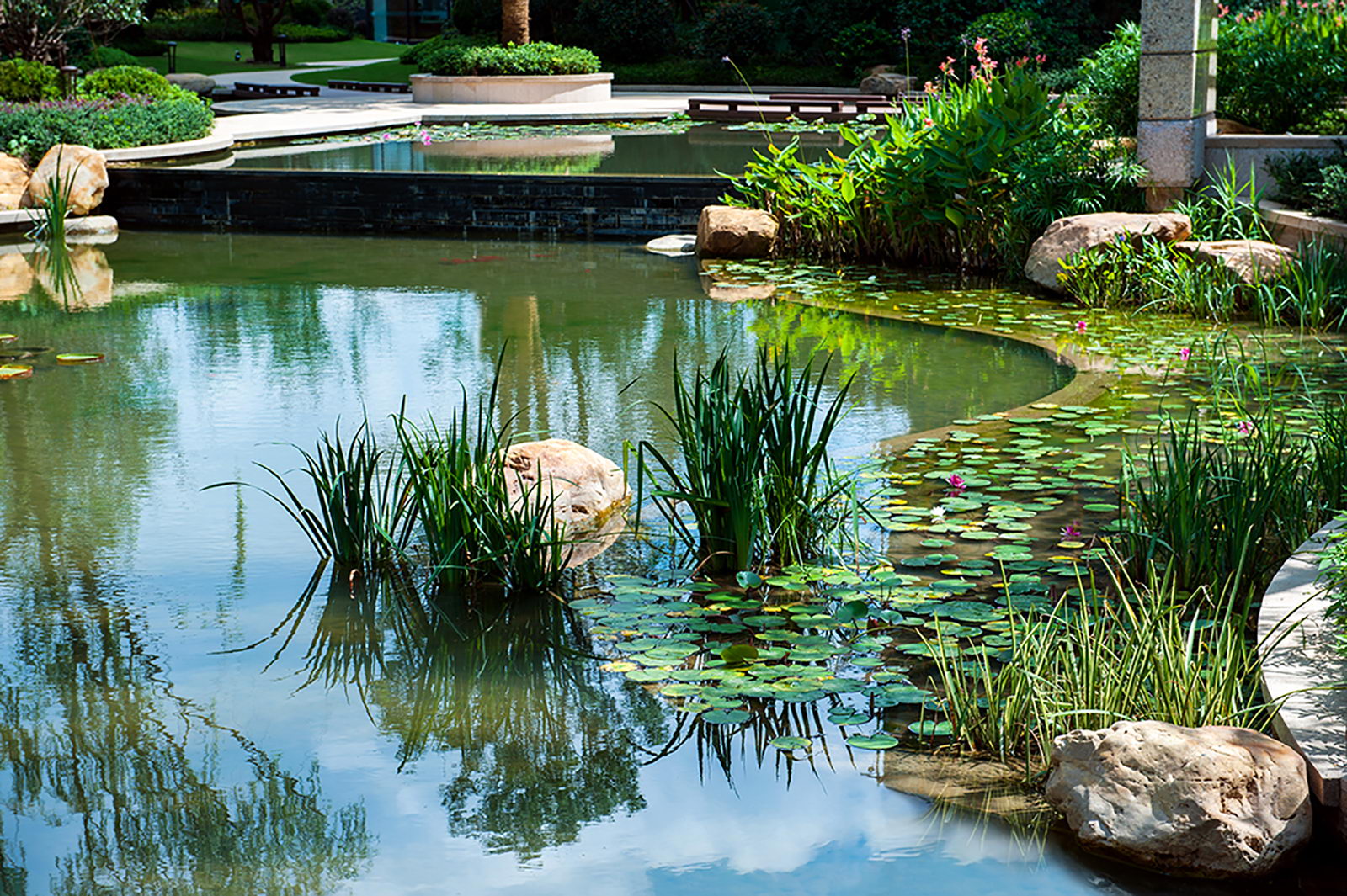 整個小區(qū)的景觀設(shè)計在當(dāng)時借鑒日本人居設(shè)計思想,樓盤的總體定位即以高雅、藝術(shù)、自然共生為理念,融入精巧設(shè)計,對景觀細節(jié)進行了一一呈現(xiàn),疊石理水,以“水岸共生、居隱書香”為主題,構(gòu)筑蘊涵傳統(tǒng)園林的空間布局和現(xiàn)代園林精華的景觀環(huán)境。
